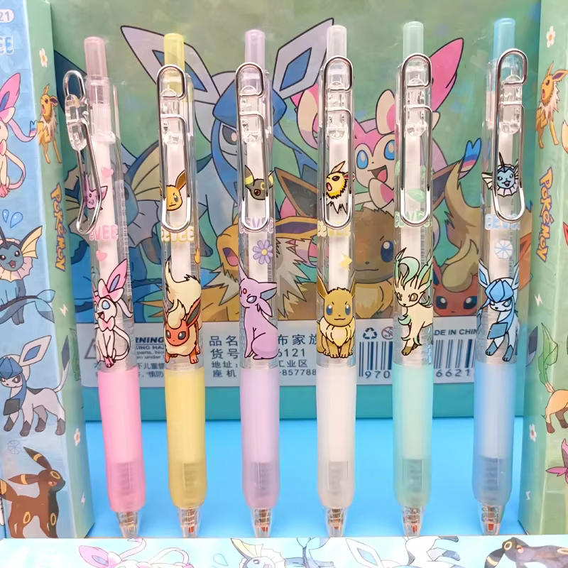 Canetas de gel pokémon fofas eeveelution, material escolar, artigos de papelaria fofos, acessórios de anime, presentes de festa de aniversário, brinquedo infantil