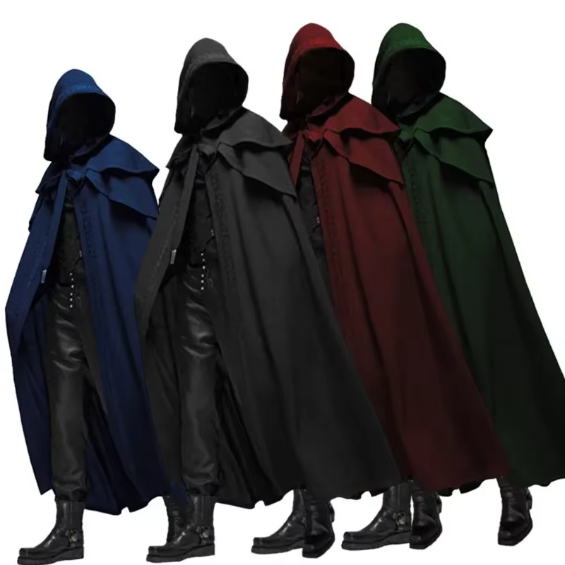 Capa medieval masculina e feminina, capa com capuz, vintage, gótica, preta, fantasia medieval, viking, halloween, cosplay, roupas