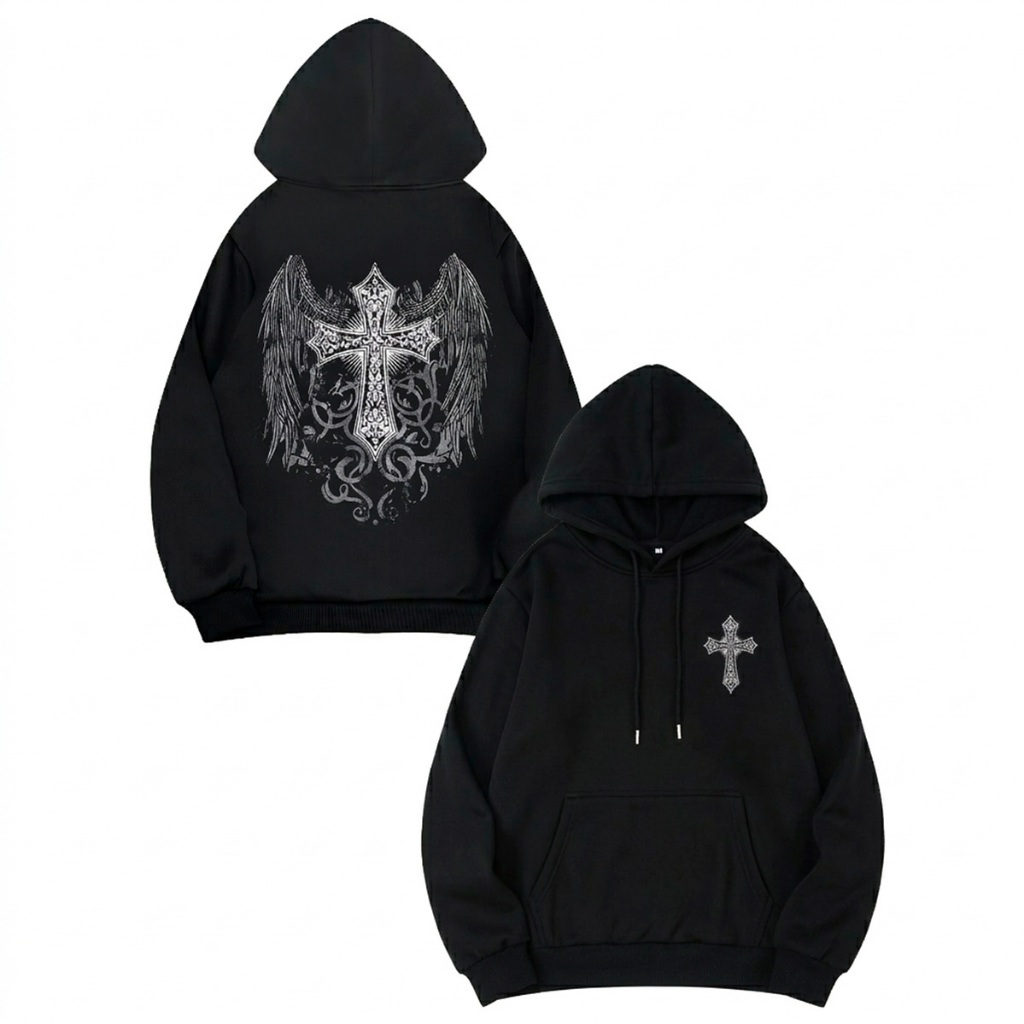 Casaco Moletom Cruz Gótica Blusa de Frio com Capuz Estilo Dark Streetwear