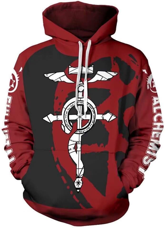 CHLOBLOM Edward Elric Cosplay Costume 3D Hoodie Zipper Jacket Pullover Sweatshirt