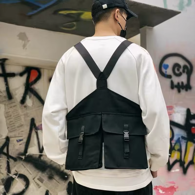 Colete cargo multi bolsos para homens e mulheres, colete funcional casual, estilo streetwear, hip-hop, punk rock, rua principal, 2024