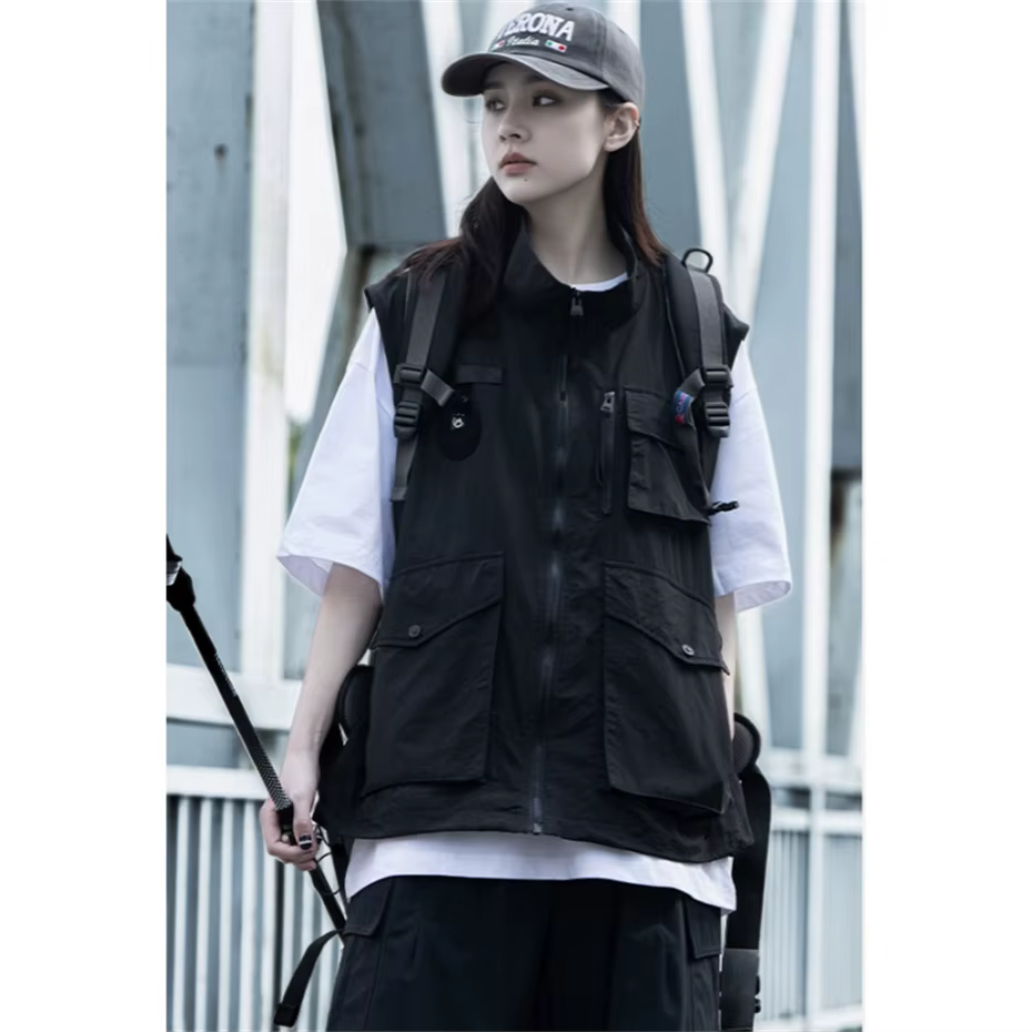Colete tático techwear masculino, colete de carga funcional sem mangas, jaqueta casual, respirável, bolsos grandes, à prova d'água