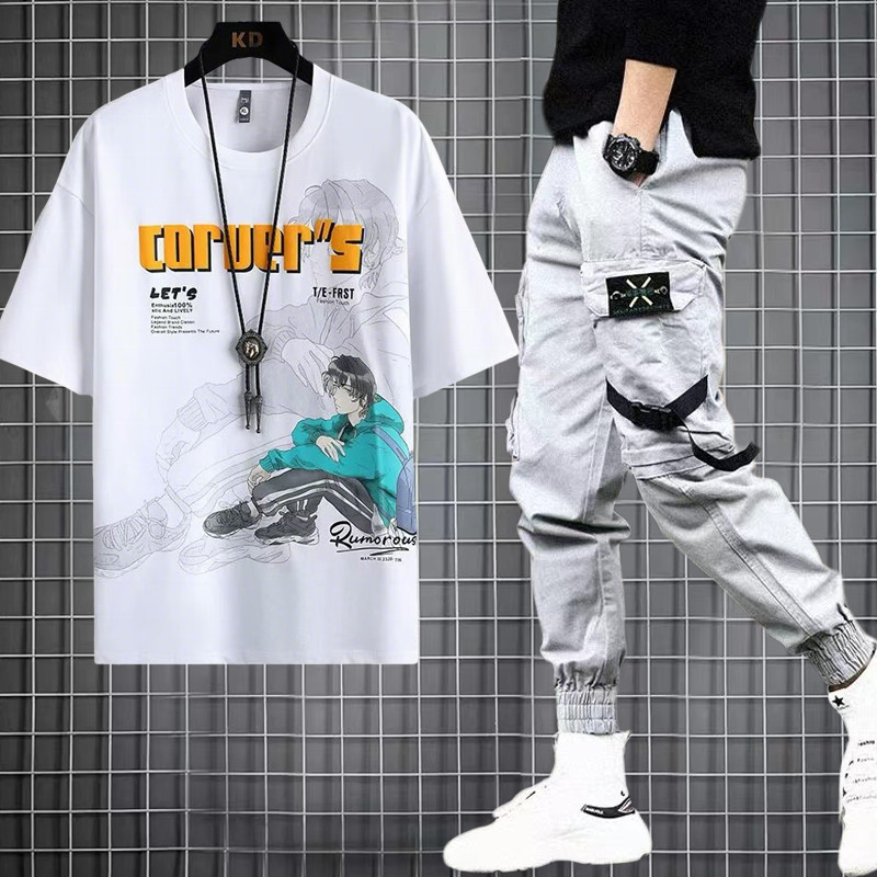 Conjunto De Camiseta E Calças Cargo Com Estampa De Anime Menino Rumoso – Agasalho Masculino Fashion Streetwear (M-3XL)