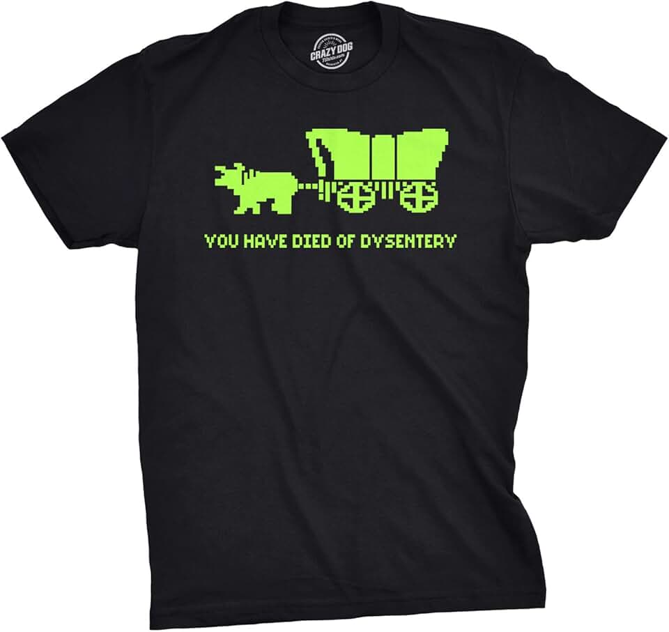 Crazy Dog T-Shirts Camiseta divertida You Have Died of Dysentery, videogames, nerd, legal dos anos 80