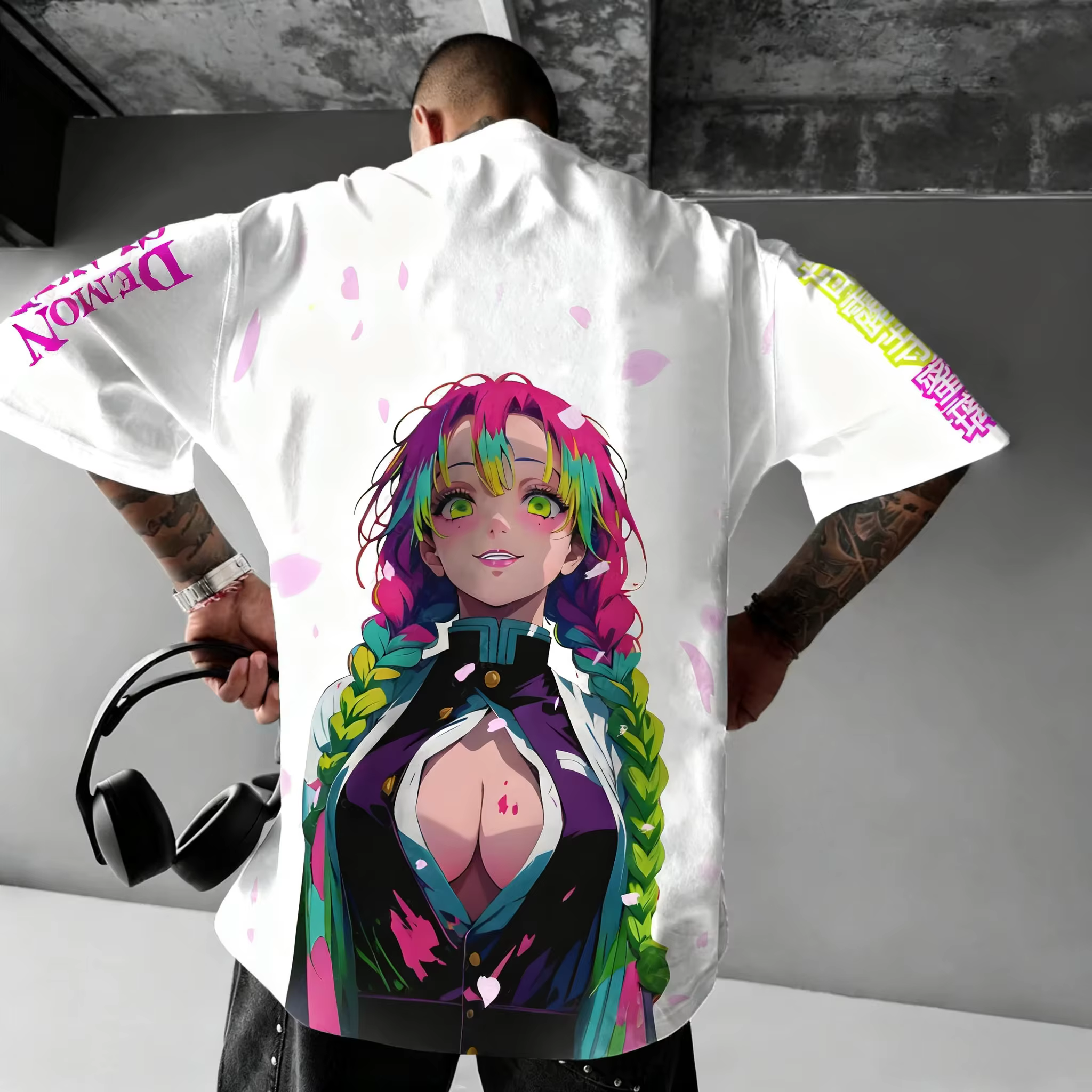 Demon slayer anime co marca camiseta verão masculino e feminino novo grande harajuku casual solto pai criança manga curta topo