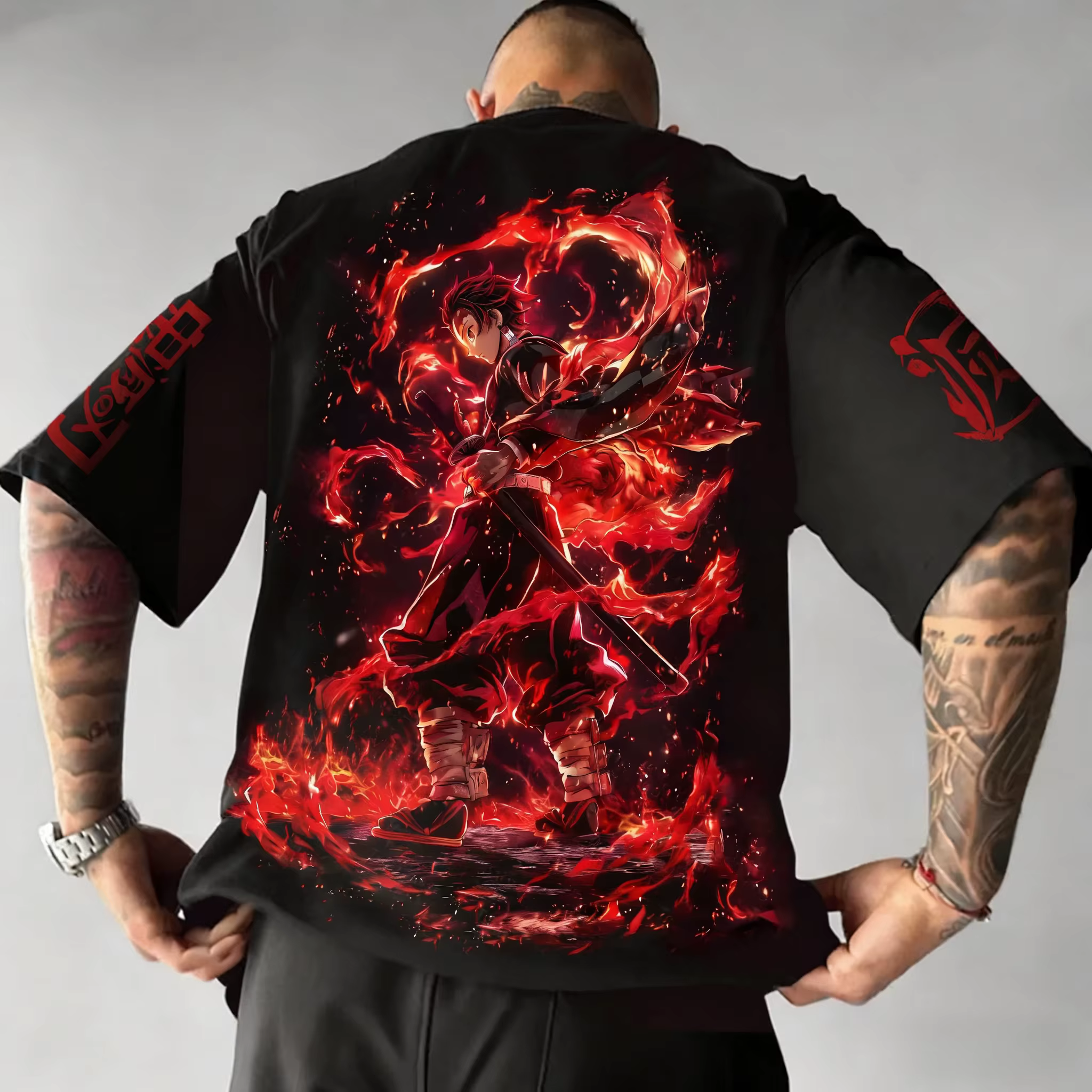 Demon slayer anime co marca impressa camiseta verão novo masculino japonês harajuku solto casual crianças pai criança topo