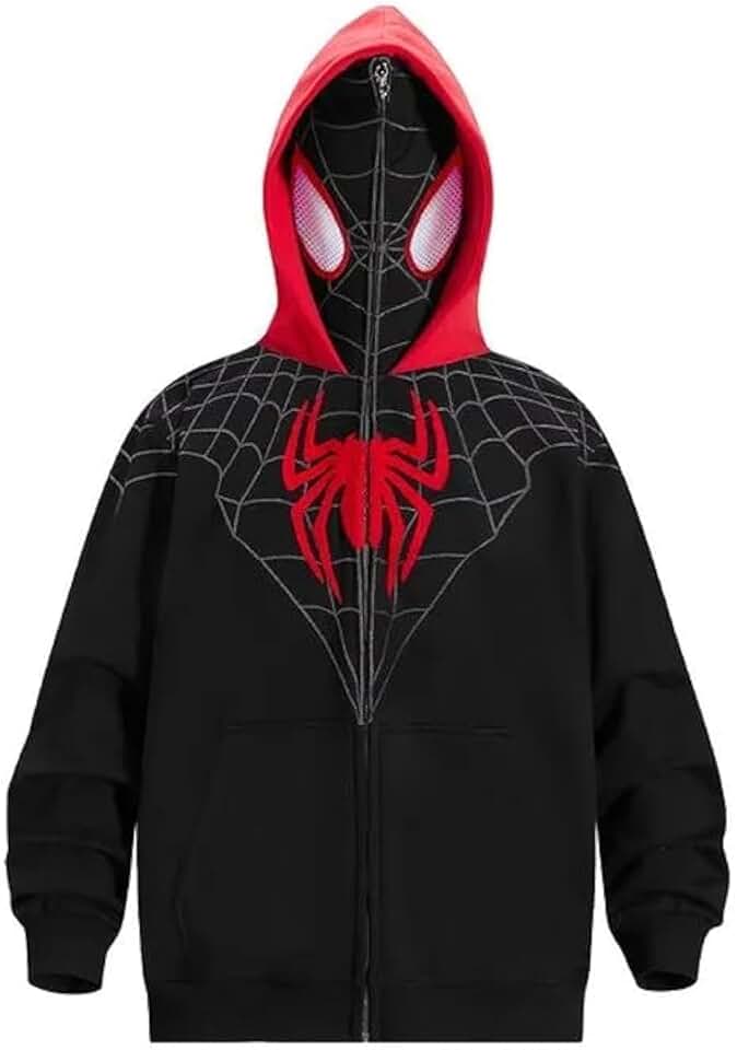 Dynict Moletom masculino com capuz, unissex, tamanho grande, gótico, Y2K, punk, streetwear, com zíper, bonés de aranha