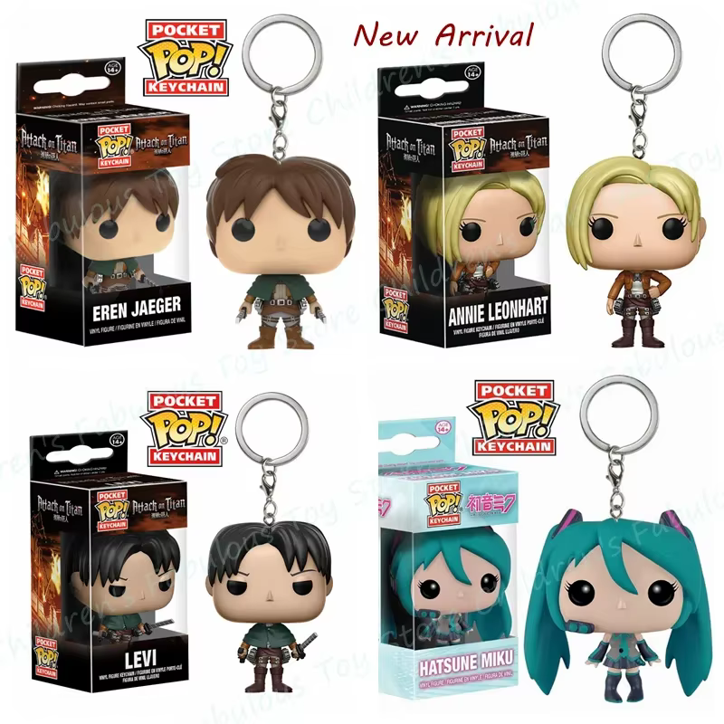 Funko chaveiros ataque em titã levi eren jaeger annie leonhart hatsune. miku figura de ação chaveiro brinquedos de bolso bonecas chaveiro