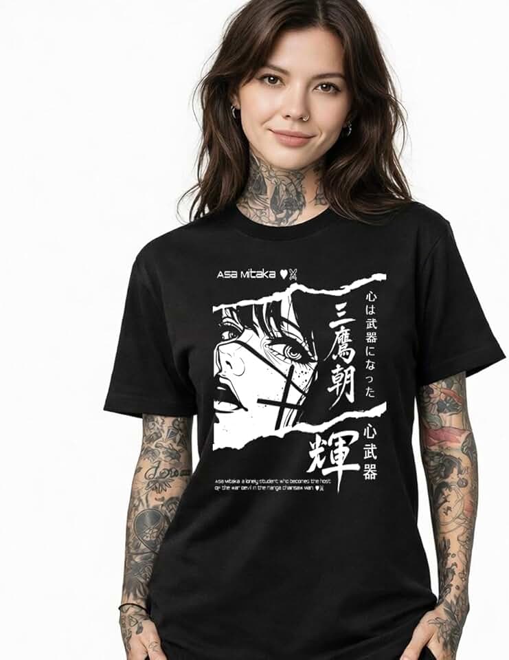Genérico Camiseta Unisex Anime Asa Mitaka Chainsaw Man Estampa Mangá Dark Japonesa 100% algodão