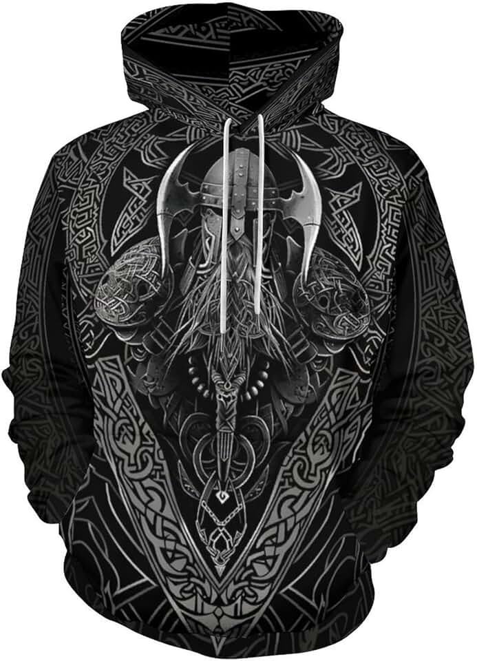 GLUDEAR Moletom com capuz masculino com estampa 3D da mitologia nórdica tatuagem Vikings