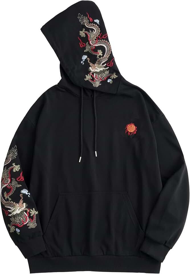 HaiZi XiHuan Streetwear Moletom masculino com estampa de dragão bordado pesado japonês Techwear folgado anime