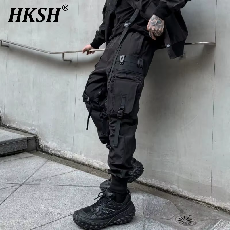 Hksh outono primavera novo masculino tático safari estilo calças de carga macacão escuro maré moda solta bolsos casuais techwear hk0011