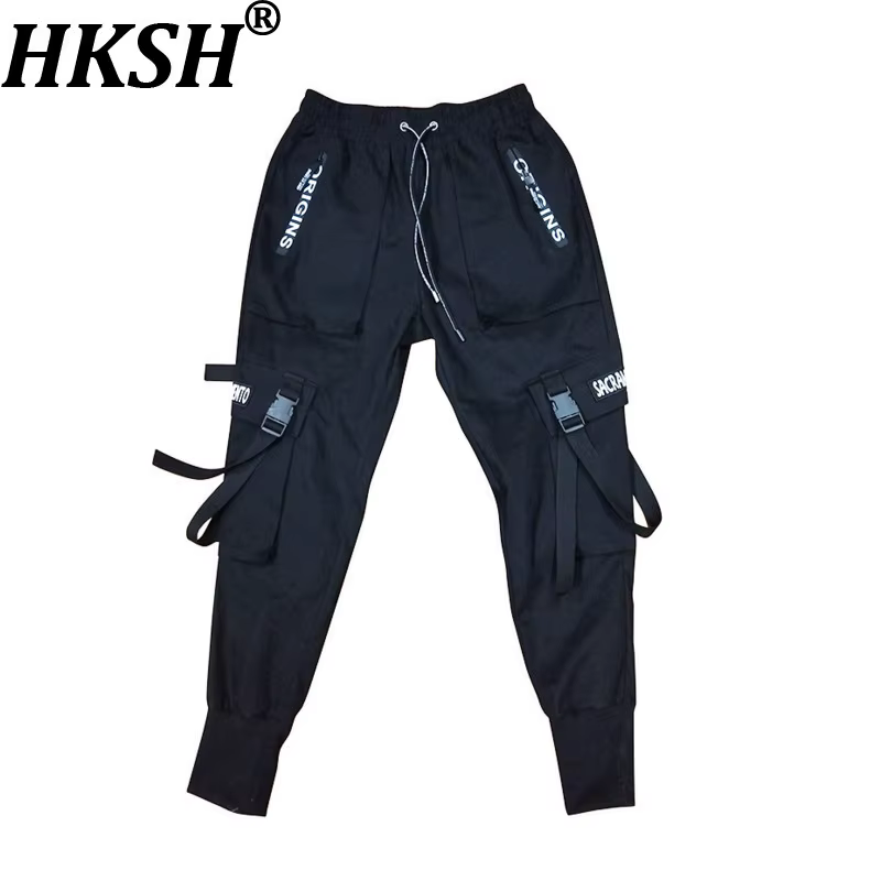Hksh primavera novo homem maré escuro estilo safar macacão moda techwear leggings versátil calças de carga tática cintura elástica hk8385