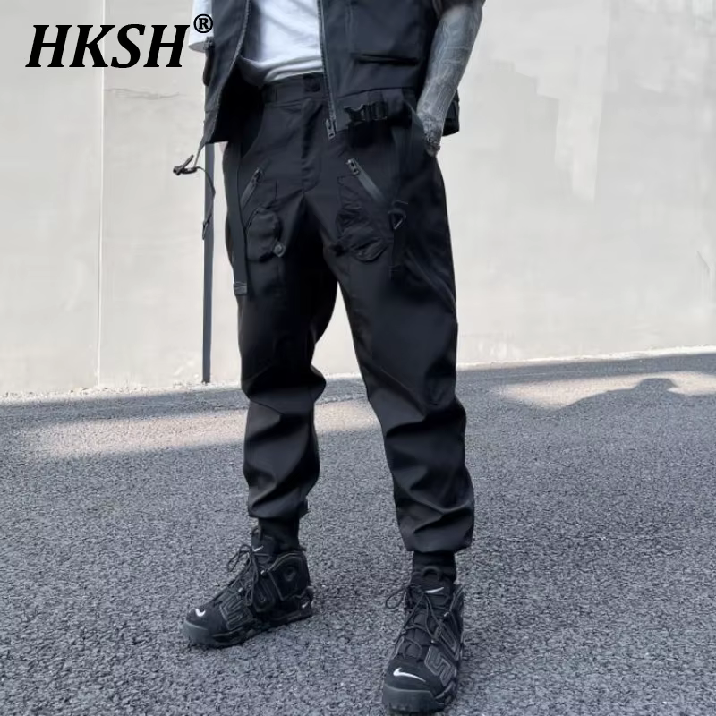 Hksh primavera novos homens maré escura techwear calças de carga tática moda solta leggings estilo safari chique macacão streetwear hk0713