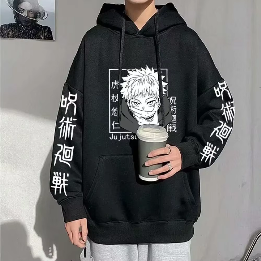Hoodie anime impressão sweatshirts jujutsu kaisen moletom com capuz masculino harajuku outono inverno streetwear roupas yuji itadori hoodies