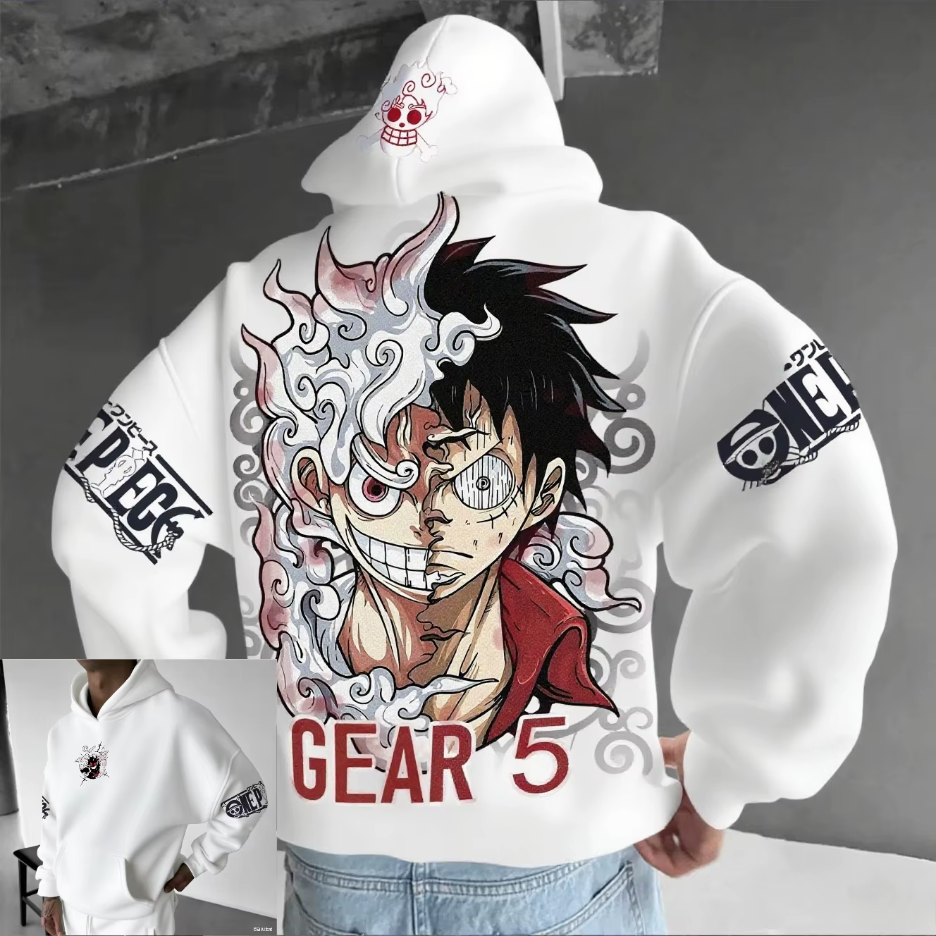 Hoodie de Anime para Homens e Mulheres One Piece Luffy Gear 5 Nika, Moletom Casual de Manga Longa para Outono e Inverno