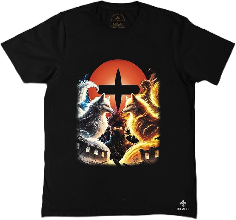 Idealis Camiseta Masculina Idealis -100% Algodão Premium 30.1 penteado - Estampa Kitsune - Otaku - Gamer - Fantasia - Anime - Estampa personagem de Anime/Game.