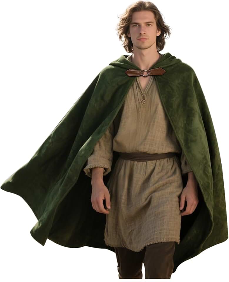 Joukavor Capa com capuz de veludo medieval renascentista com capuz para homens e mulheres, fantasia de Halloween