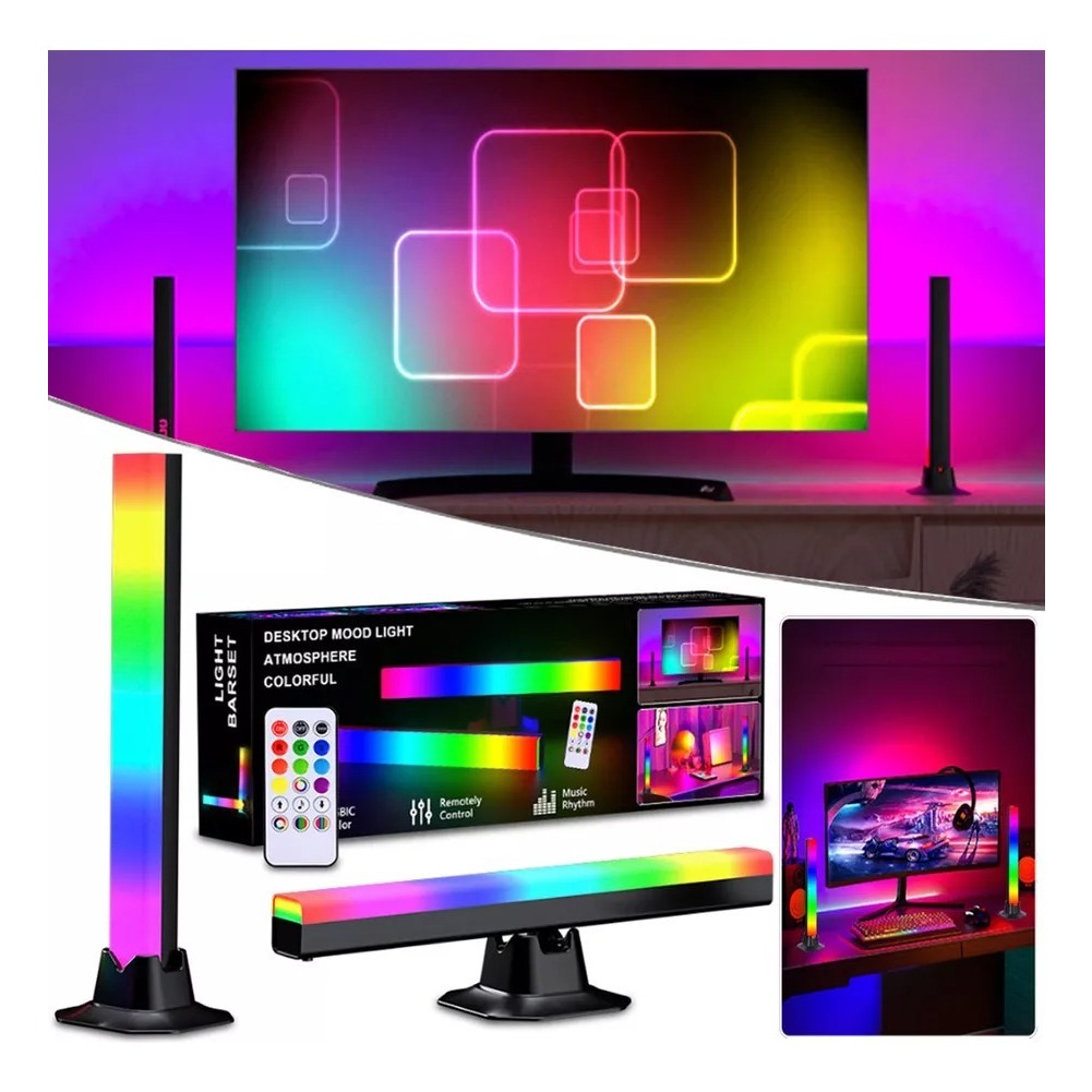 Kit 2 Luminárias Barra Led Rgb Gamer Sensor Músical Controle Music Sync Iluminação Ambiente