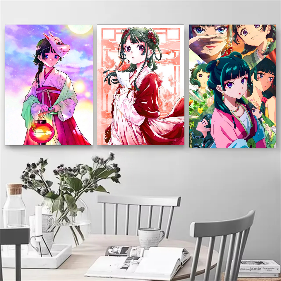 Kit 3 Quadros Placa Decorativo Anime Diários de uma Apotecária Maomao Jinshi Cartaz Poster Geek 19x27