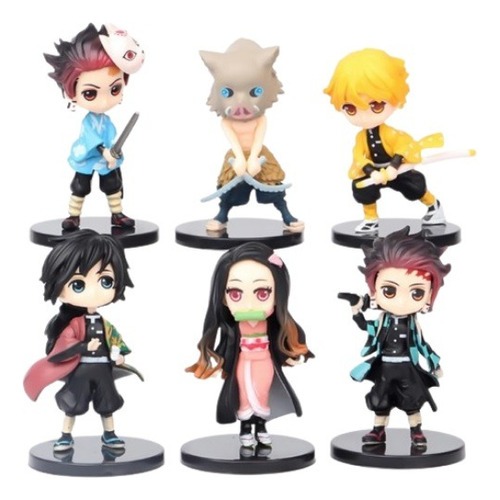 Kit 6 Bonecos Action Figure Anime Demon Slayer - Tanjiro, Nezuko, Zenitsu, Inosuke, Tomioka