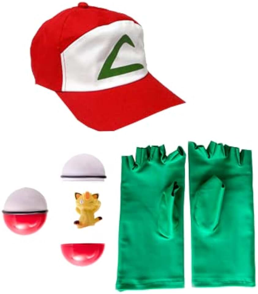 Kit Acessórios Ash, Treinador de Pokemon - boné, luvas e pokebola