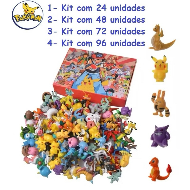 Kit Com 24, 48, 72 ou 96 Pokémon Pikachu Sortidos Bonecos Miniatura Brinquedo Figura Anime Colecionável Para Crianças