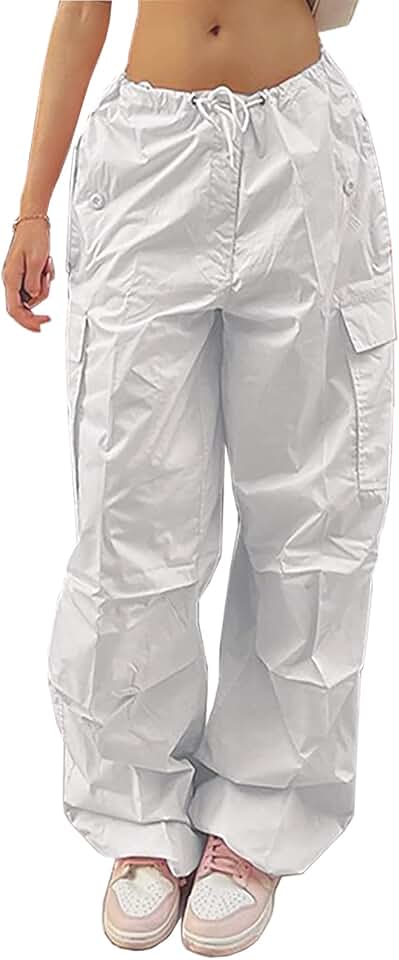LQI Calça cargo feminina folgada com cordão elástico Y2K calça de caminhada paraquedas para mulheres hippie