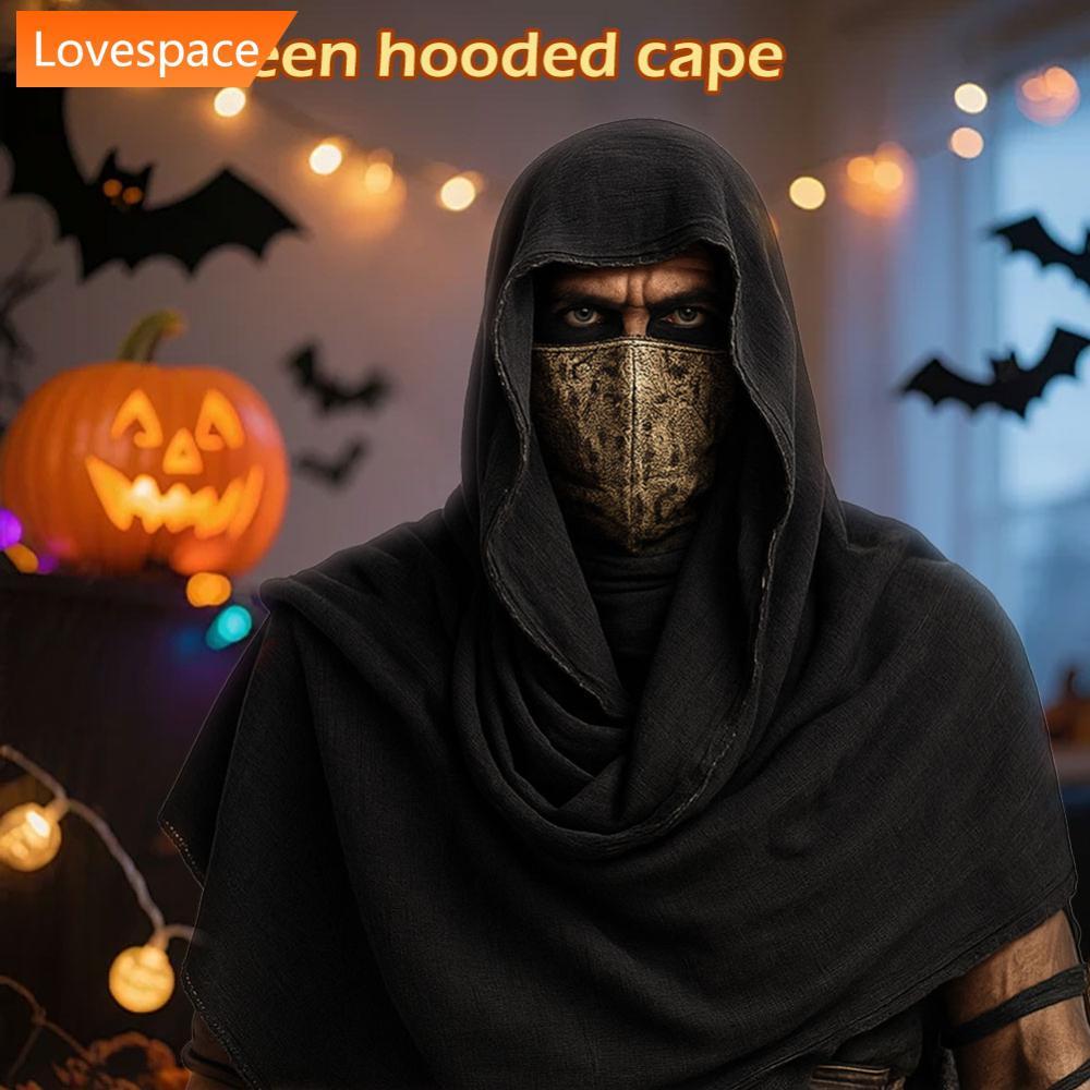 LS-STORE Masculino Medieval Pirata Retro Capuz Cachecol Preto Café Envoltório Capa Renascentista Halloween Masquerade Tr