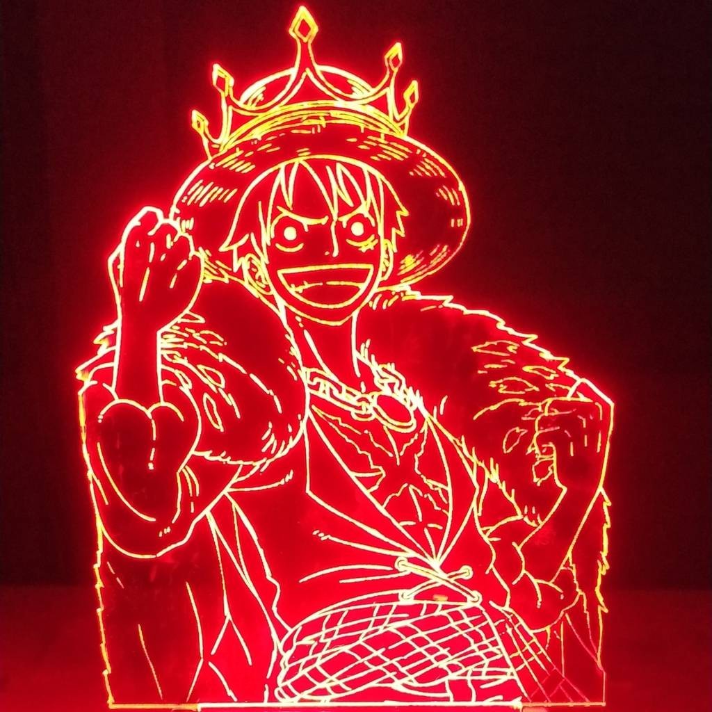 Luminária Anime De Mesa Luffy Decoração Geek Nerd Abajur P/ Quarto Infantil One Piece Desenho Led 3d