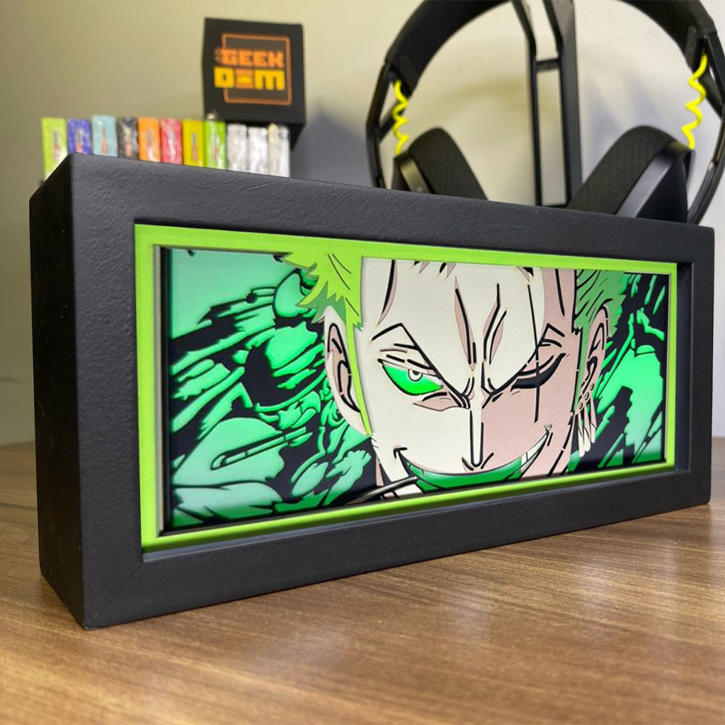 Luminária Lightbox Anime 3D LED Decoração de Mesa PC Gamer One Piece Roronoa Zoro Mod2