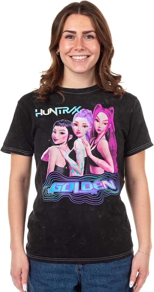 Mad Engine Camiseta K-Pop Demon Hunters Junior Feminina HUNTR/X Golden World Tour Camiseta Gráfica Manga Curta