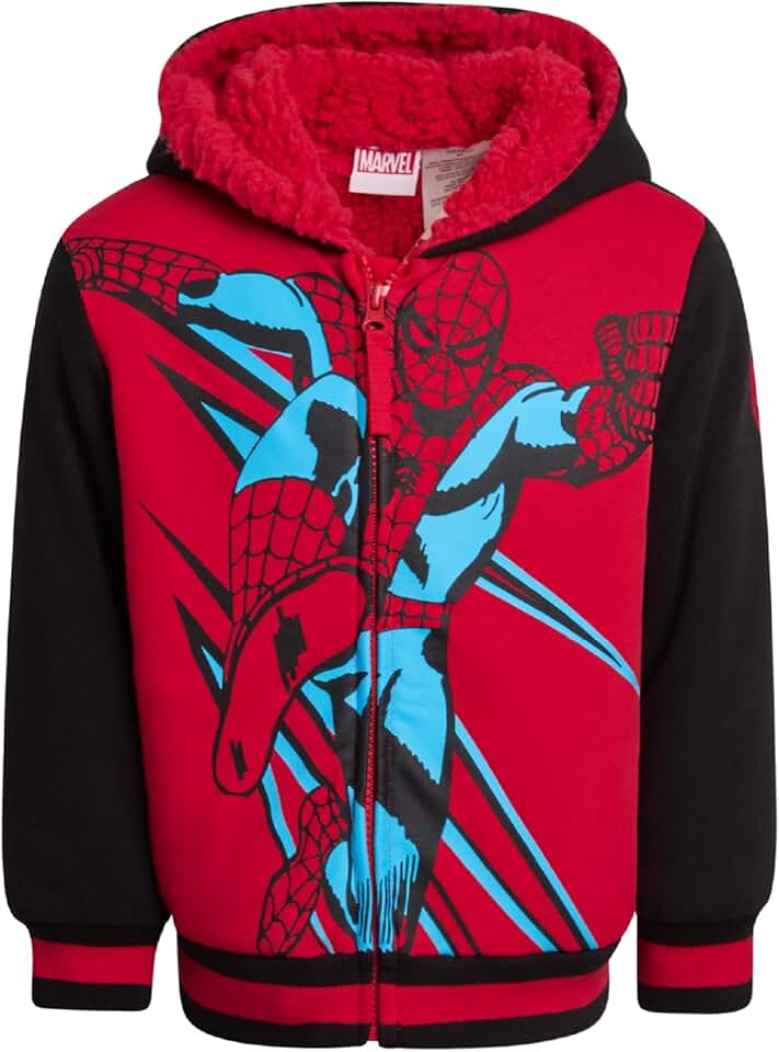 Marvel Moletom Masculino - Com Capuz E Zíper, Forro De Lã Macia Sherpa, Dos Vingadores Homem-Aranha, Para Meninos (3T-7), Tamanho 5, Vermelho-Aranha/Preto