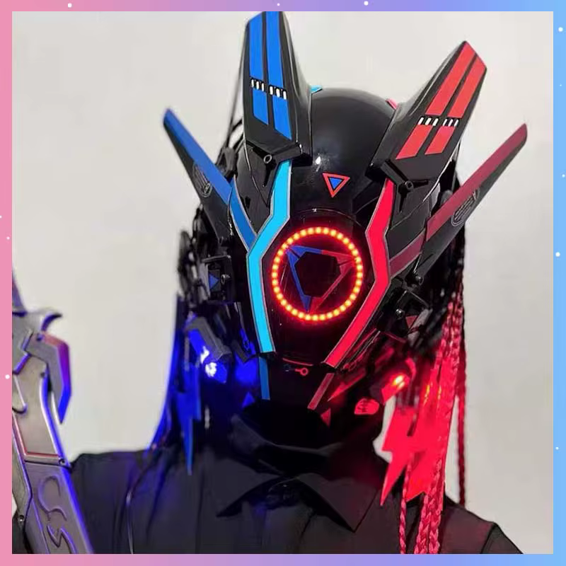 Máscara Cyberpunk para Cosplay, Capacete de Soldado com Luz LED Circular, Máscara de Guerreiro Mecânico, Acessório para Festa de Halloween e Carnaval, Presente para Cosplayer