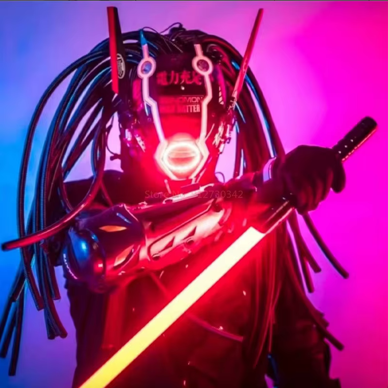 Máscara de capacete novo cyberpunk samurai robô tecnologia shinobi especial punk techwear com luz led cosplay máscara brinquedo crianças presente do dia das bruxas
