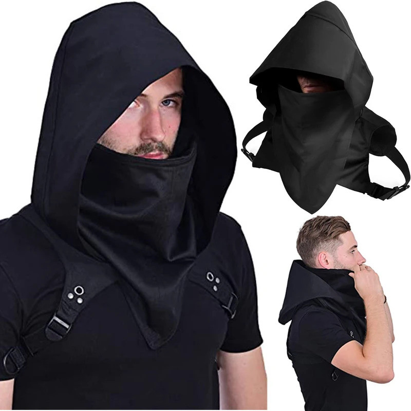 Medieval Masculino Vintage Pirata Cosplay Capa Com Capuz Preto Cyberpunk Rogue Cachecol Festa De Halloween Traje Adereço