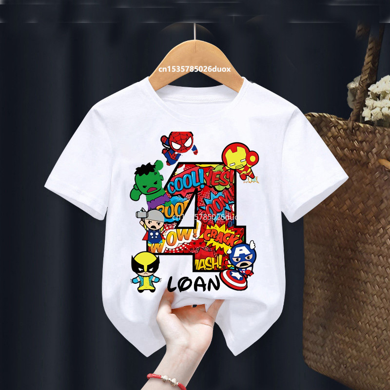 Menino 2 3 4 5 6 7 8 Anos Aniversário Marvel Camisa Homem-Aranha Personalizar Nome Menina Camiseta Super Herói Roupas Festa