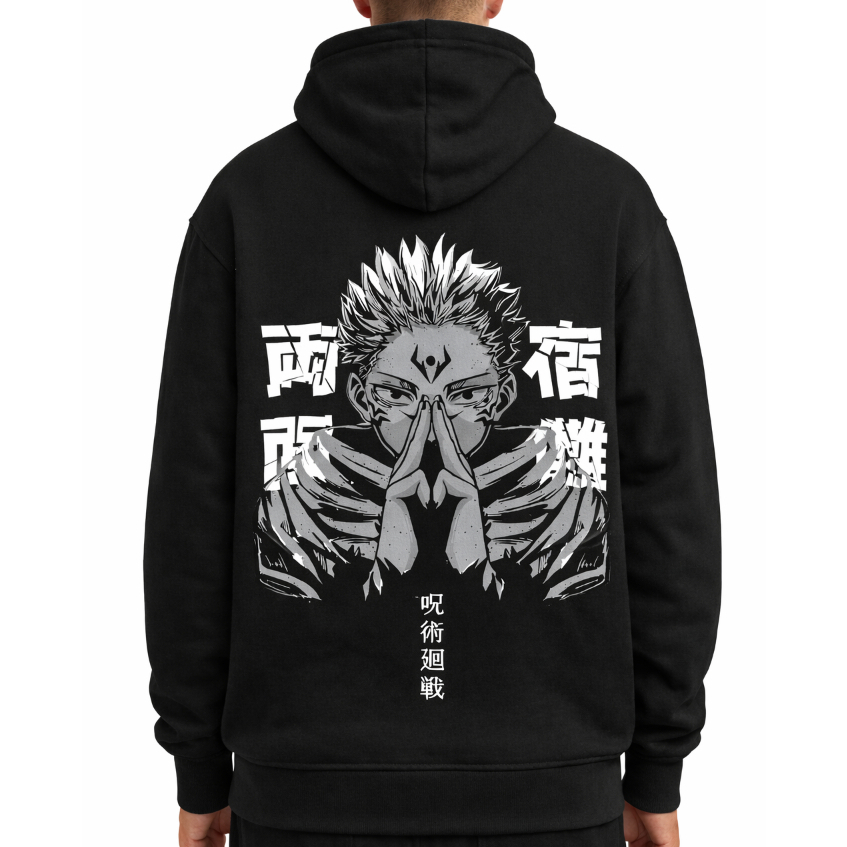 Moletom Anime Sukuna Jujutsu Kaisen Preto Estampa Costas Streetwear Oversized