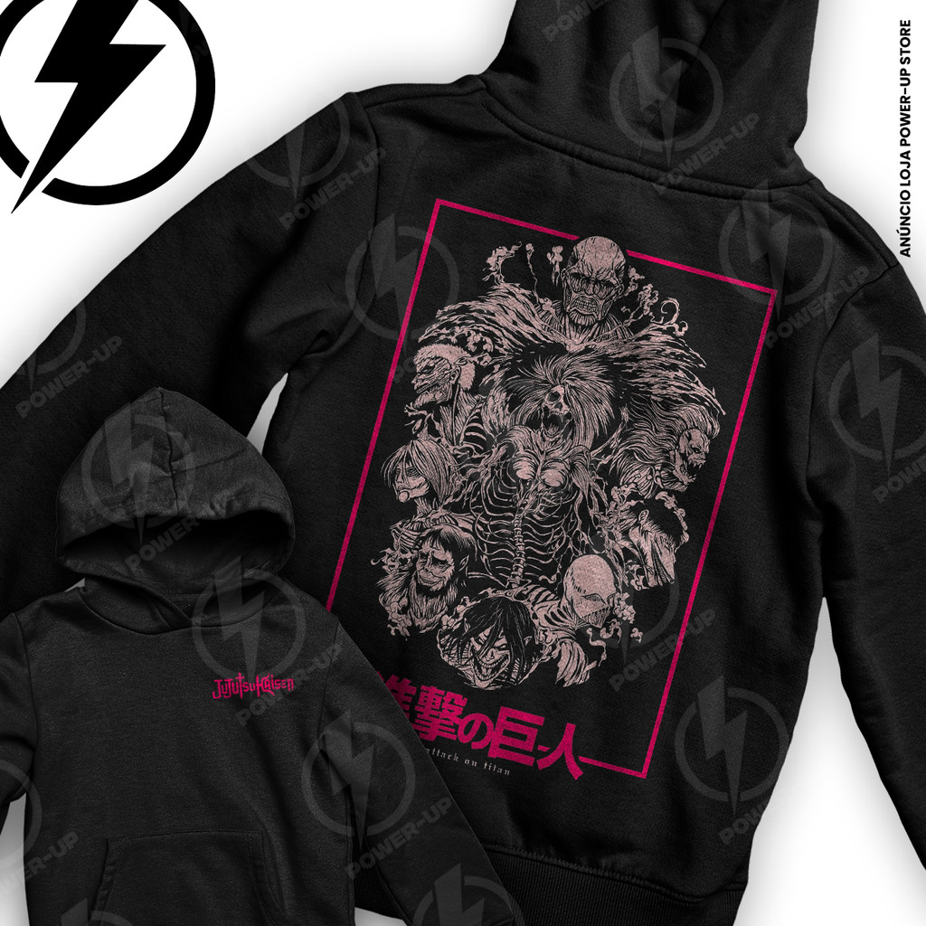 Moletom Attack On Titan Titan Colossal E Personagens Frente E Verso Blusa De Frio Anime