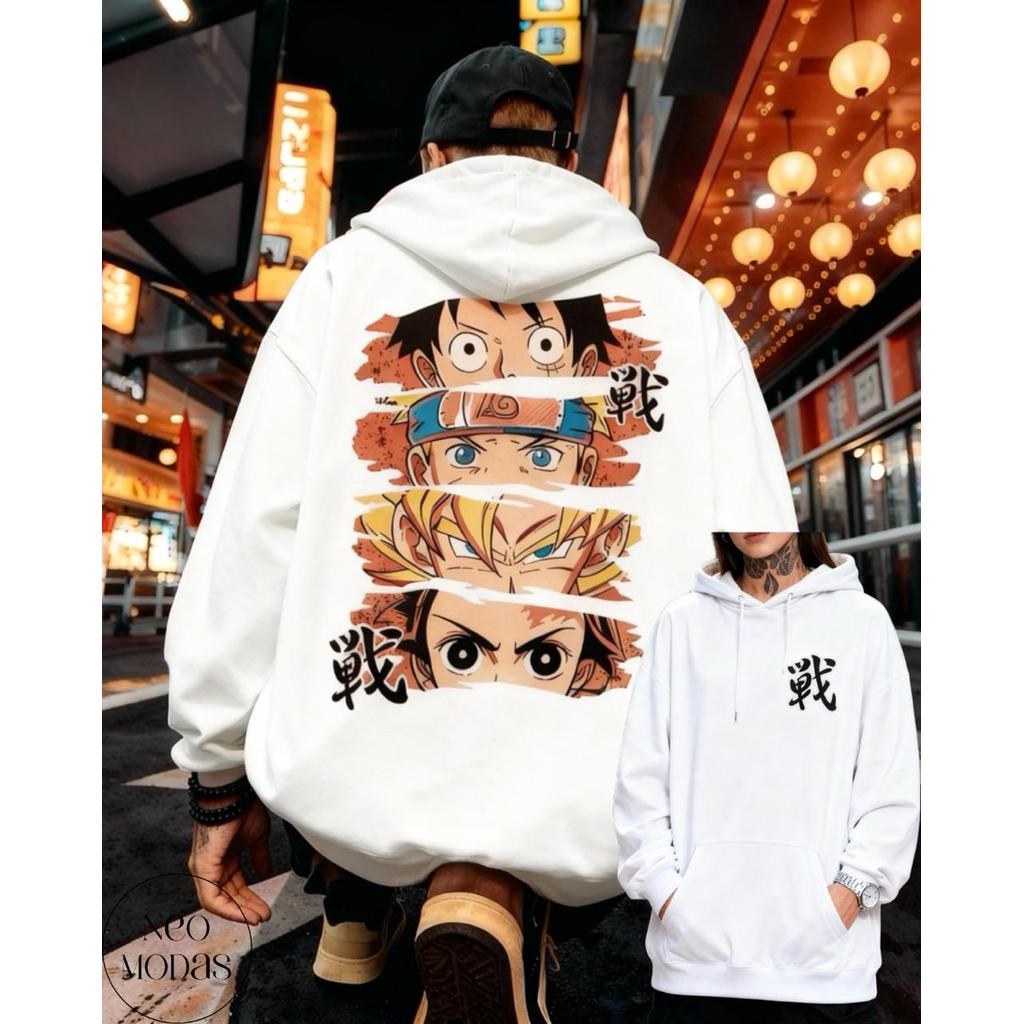 Moletom Blusa de Frio Premium Canguru Capuz Anime Luffy Naruto Goku Tanjiro Streetwaer