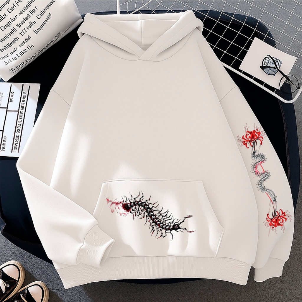 Moletom Canguru Capote C/Capuz Streetwear Unissex Jaqueta Blusa Casual Centopeia Tokyo Ghoul Kaneki Anime Geek Gotico