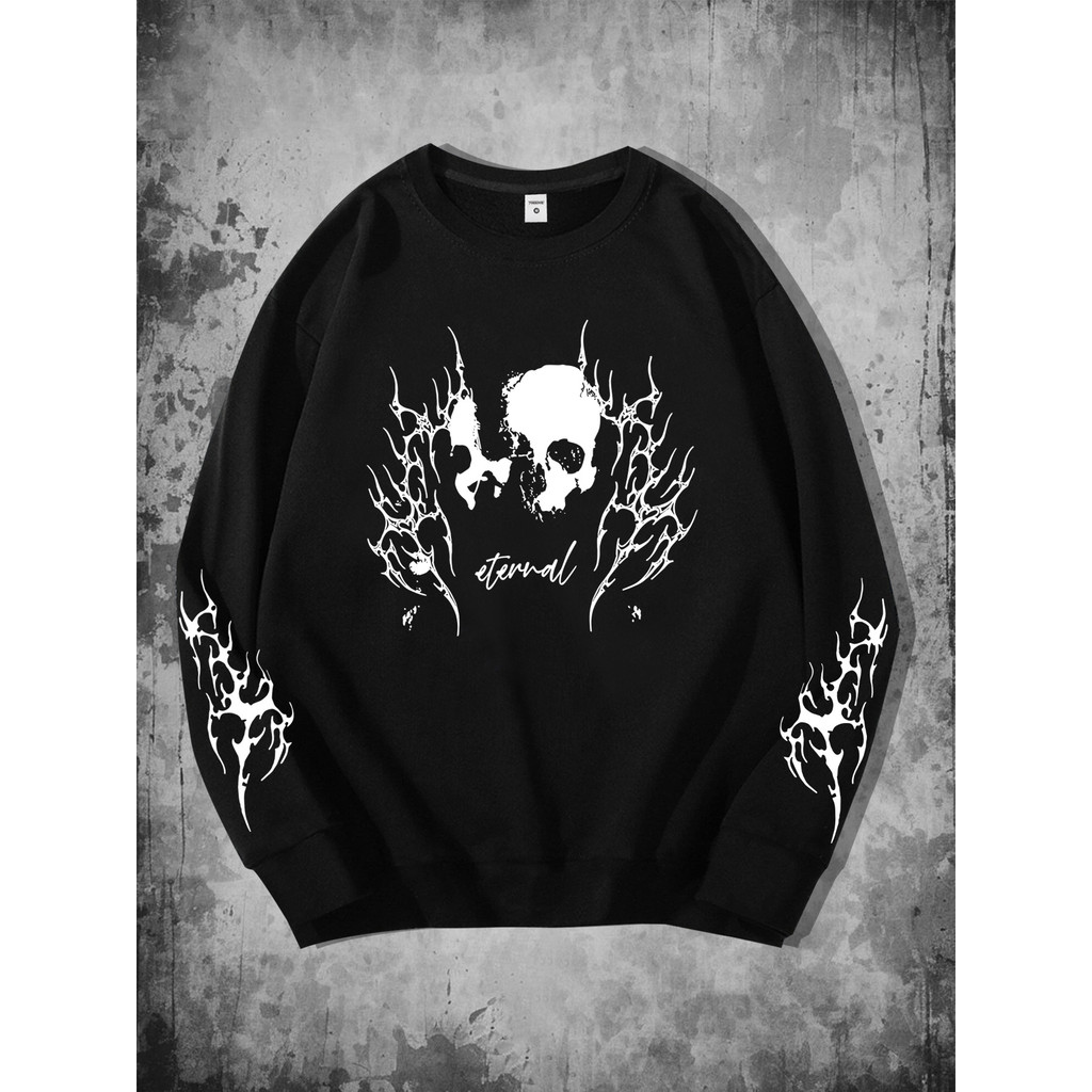 Moletom Caveira Eternal Chamas Gótico Estampa Frontal Flamejante Dark Aesthetic Streetwear Unissex