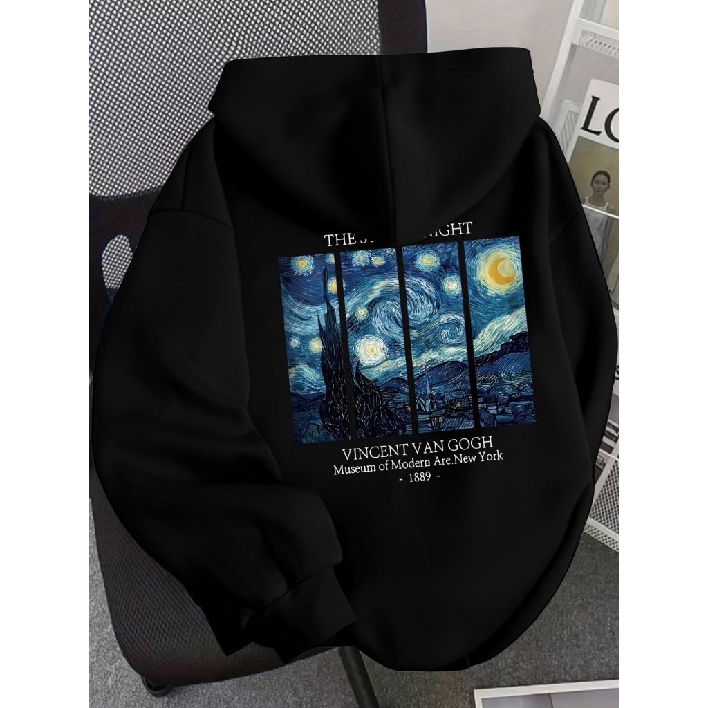 Moletom Van Gogh A Noite Estrelada Aesthetic - Blusa de Frio Canguru Com Capuz Unissex Algodão Arte Museum New York