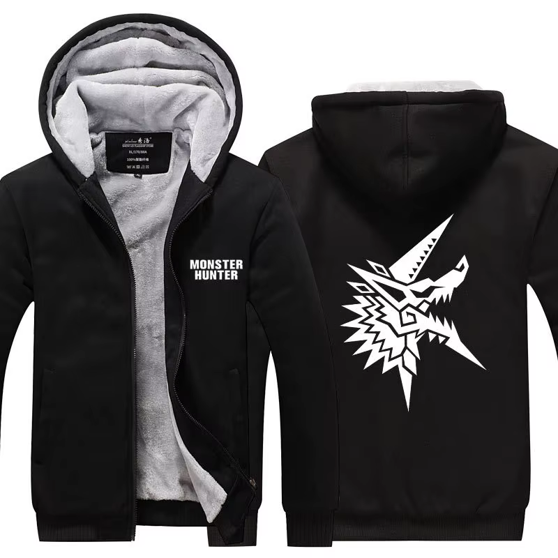 Monster Hunter Dragon Casaco com capuz Casaco de lã de inverno grosso e quente moletom manga comprida plus size