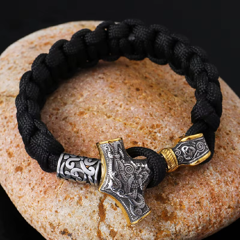 Norse vikings pulseiras de aço inoxidável, thor mjolnir, martelo, cordão, pulseira de corda, amuleto, joias femininas artesanais, presentes