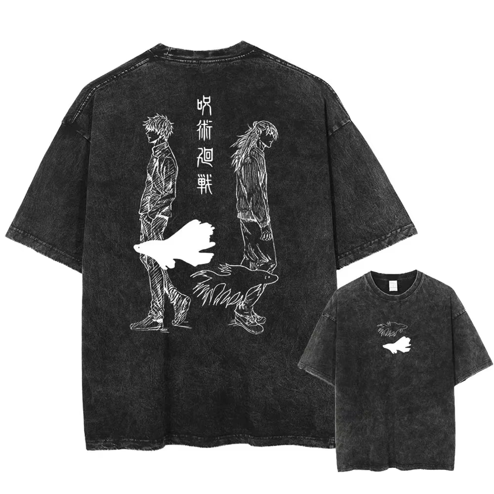 Anime jujutsu t camisa vintage lavado geto suguru camisetas masculinas retro streetwear manga curta mangá ácido de grandes dimensões topos t