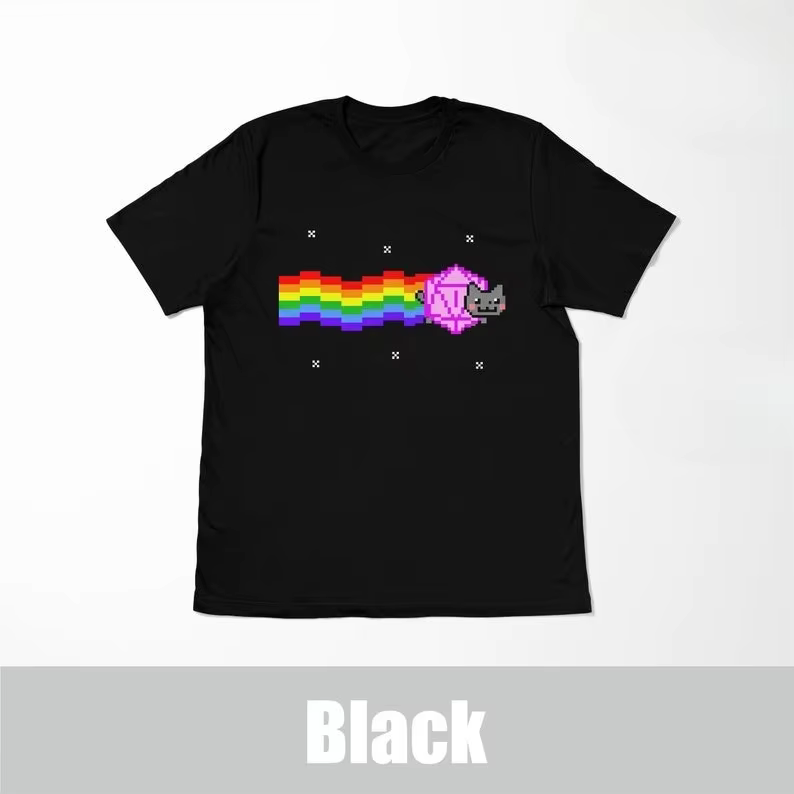 Nyan gato camisa masmorras e gatos bonito camiseta de algodão manga curta camiseta pixel art gamer harajuku retro feminino streetwear topos