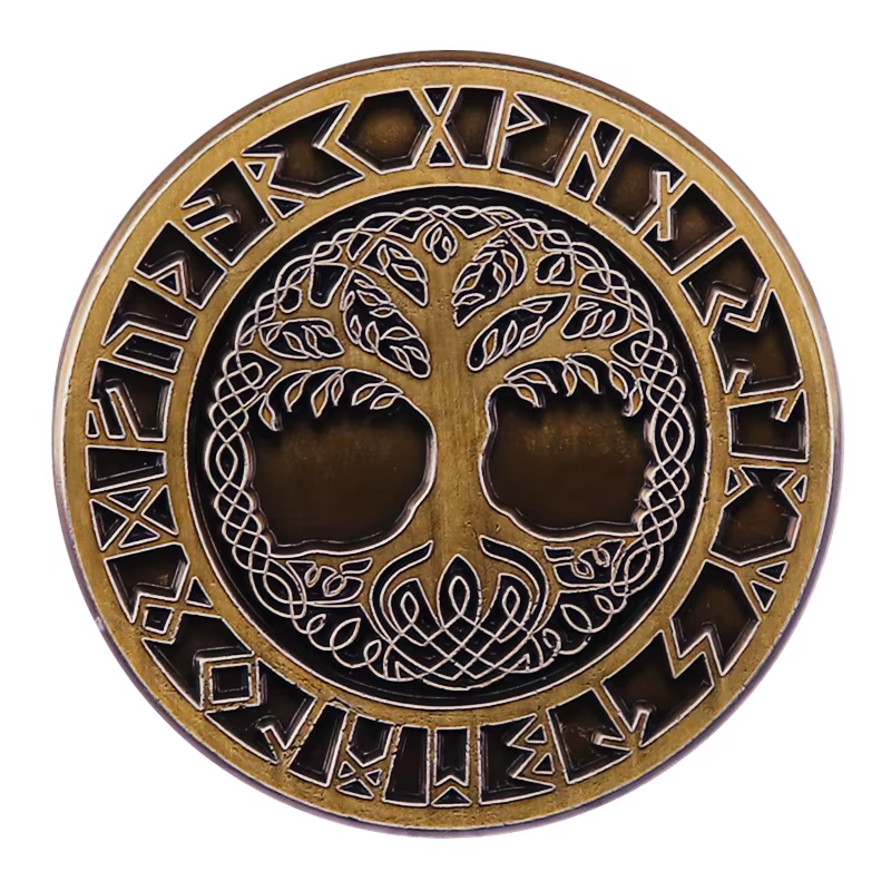 Pin esmaltado da árvore da vida mundial Yggdrasil Norse Viking Runic Circle Badge Mochila Decoração Joias