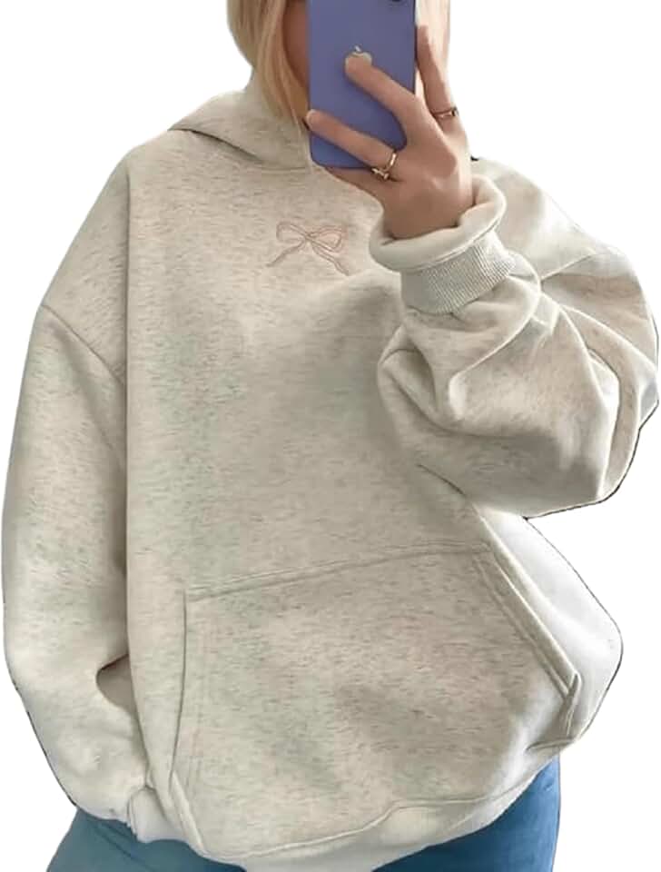 PLAYPUNK Moletom com capuz feminino com estampa de laço fofo para meninas adolescentes, pulôver de manga comprida, vintage, moda urbana