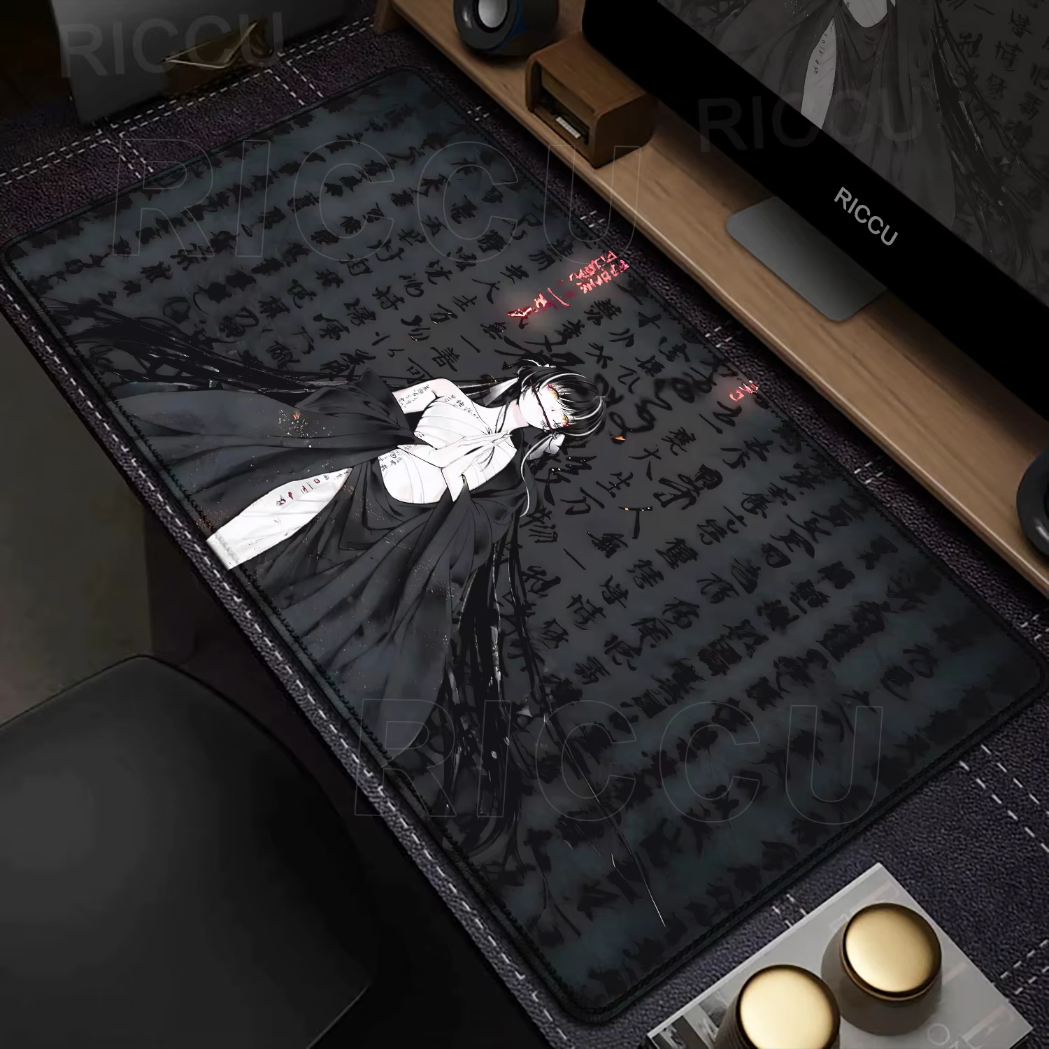 Preto e branco almofada de mesa menina escura anime mouse pad acessórios de escritório portátil mousepad gamer teclado estendido antiderrapante mouse pad